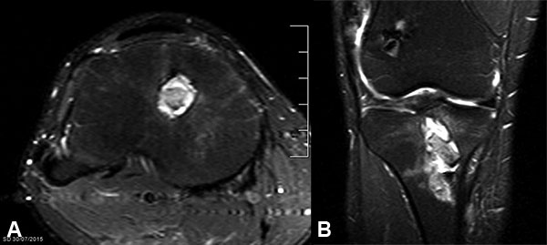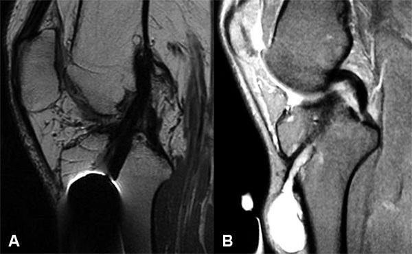 Sekiya12 presentó en 2004 el reporte de un caso que presentó 2 recidivas. La formación inicial del quiste fue 5 años después de la reconstrucción de LCA con fijación distal del injerto de isquiotibiales a un tornillo poste. La resección inicial se realizó incluyendo el pedículo del quiste y se encontró restos de sutura no reabsorbible. La boca del túnel tibial fue cubierta con el cierre de la fascia. Al año presentó la primera recidiva, la cual fue drenada mediante punción aspirativa, y 3 meses después la segunda recidiva con un mayor tamaño a la inicial. En esa ocasión realizó extracción de remanentes de sutura y curetaje de las paredes del túnel. Estos autores encontraron como causa del quiste remanentes de sutura no biodegradables. Para el cierre del túnel se han descripto varias técnicas:5,8,11-13 cierre de fascia, uso de cera, Tissucol, curetaje del túnel y relleno con auto o aloinjerto óseo. Todas con el objetivo del sellado del quiste y buenos resultados postoperatorios.