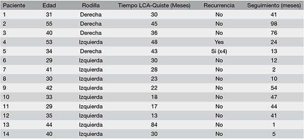 Tabla 2: Cirugía primaria de reconstrucción del LCA
