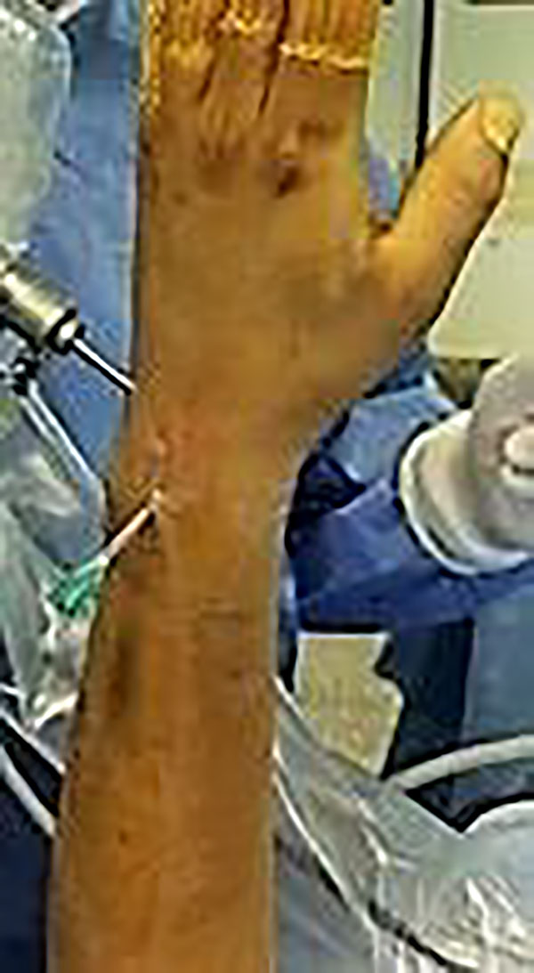Figuras 1 a 10: Muestran el ingreso de las agujas desde el portal radiocarpiano al mediocarpiano y el retiro de los hilos por el portal MCR con el nudo anclado en espacio mediocarpiano.