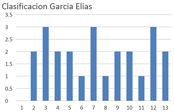 Gráfico 2: La columna muestra la clasificación de García Elías y la fila el número de pacientes.