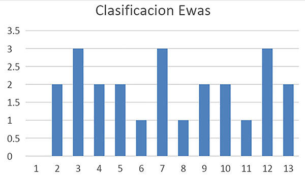 Gráfico 3: La columna muestra la clasificación de EWAS y la fila el número de pacientes.