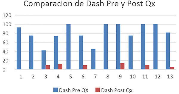 Gráfico 6: Resultados del Dash pre y post operatorios.
