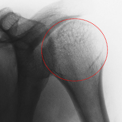 Figura 1: Rx. A.P. Hombro Izquierdo: Imagen en luna llena características de luxación posterior.