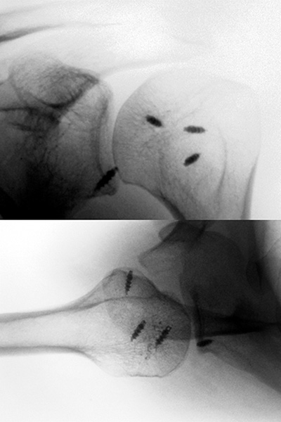 - Paul J, Hinterwimmer S, Wörtler K, Imhoff AB. Arthroscopic transfer of the M. subscapularis in the reverse Hill-Sachs defect. Arthroskopie 2008;21:188-191.