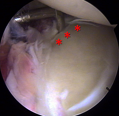 La artroscopia permite una magnificación de la imagen de la superficie articular, como así también una plástica de reparación de la Bankart reversa con resultados previsibles.