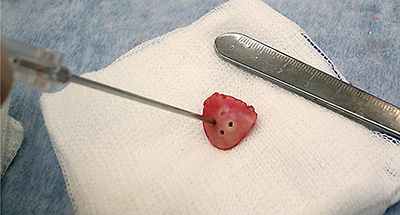 Figura 8: Preparación del FLO mediante perforaciones.