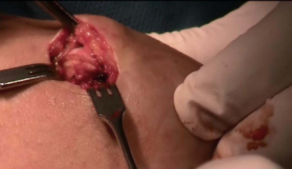 Figura 3: 2/3 proximales y mediales de rótula izquierda. Fotografía intraoperatoria, Hospital Británico de Buenos Aires.