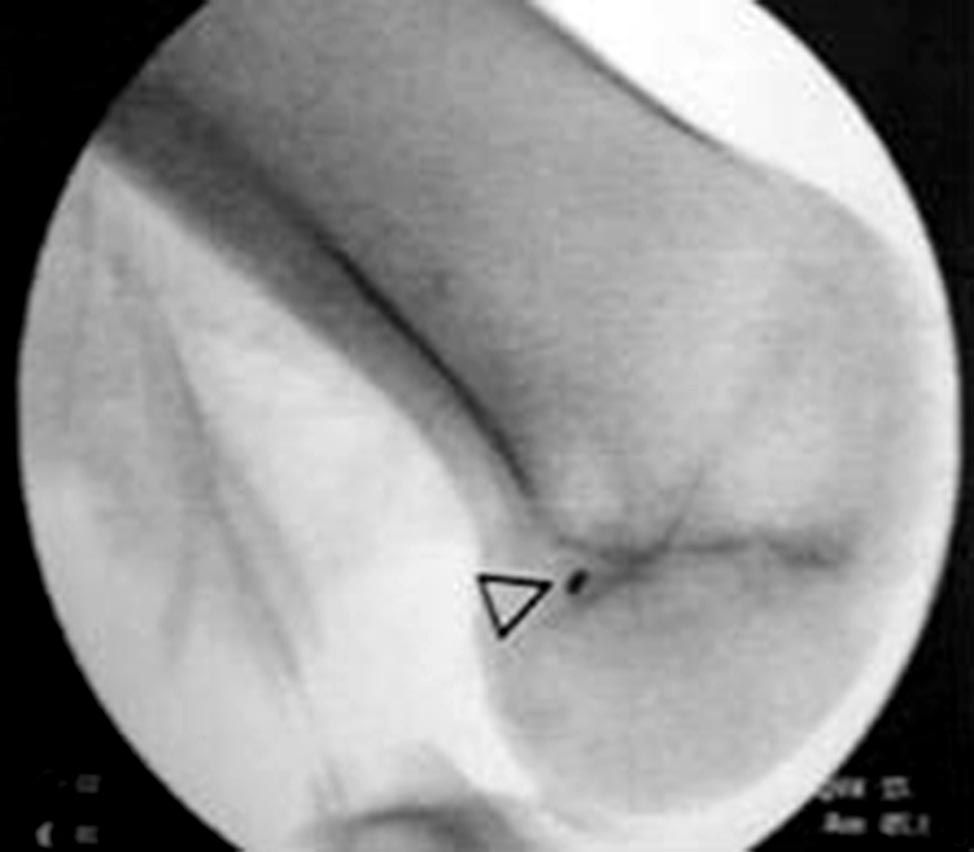 Figura 6: Imagen radioscópica intraoperatoria del sitio de fijación femoral.