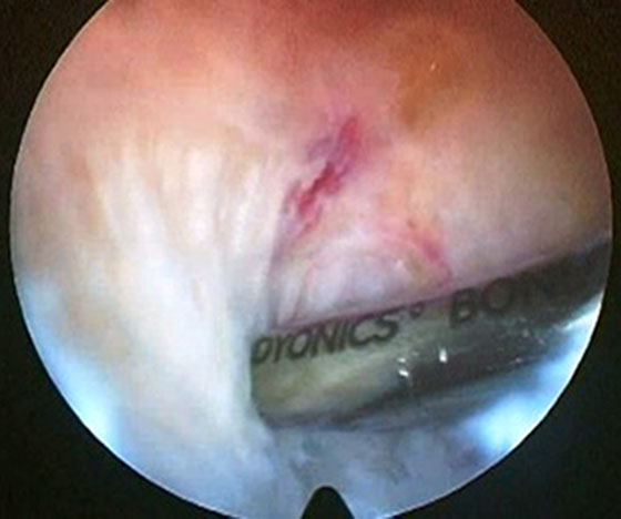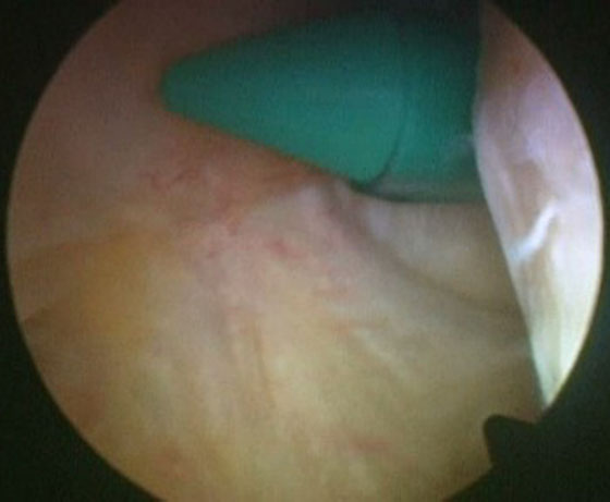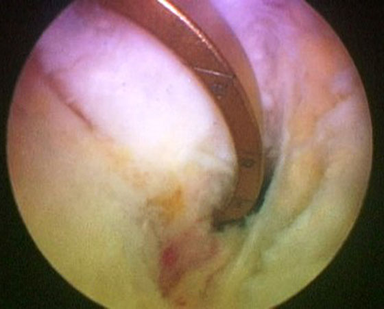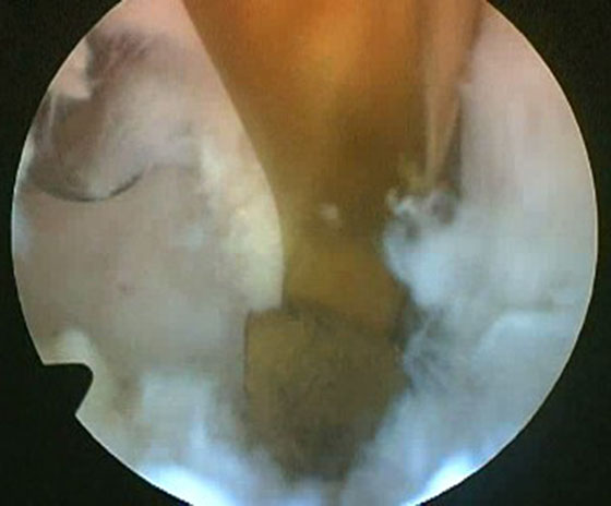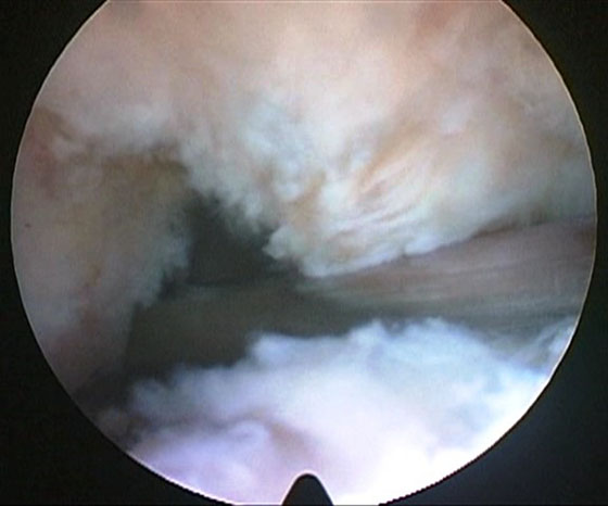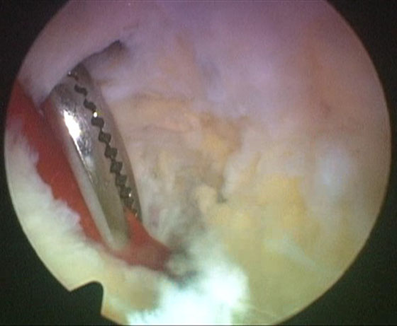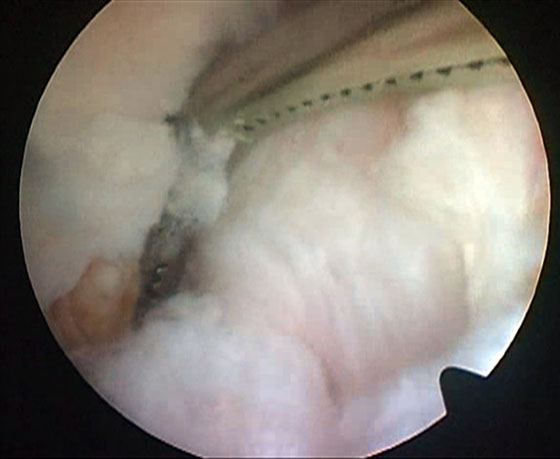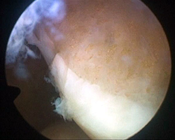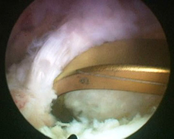 Se utilizan los portales habituales anteromedial, anterolateral, posteromedial y un portal anterior medial a la altura del polo distal de rótula que brinda buen acceso a la zona posterior de la rodilla con un adecuada inclinación. En algunas oportunidades también utilizamos el portal posteroexterno para asistir la limpieza posterior.