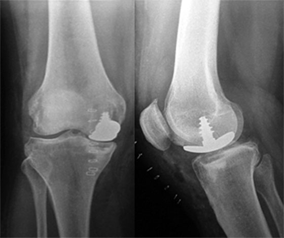 El control radiológico demuestra la congruencia del implante con la superficie ósea, la cual restaura la anatomía del cóndilo femoral (Fig. 6).