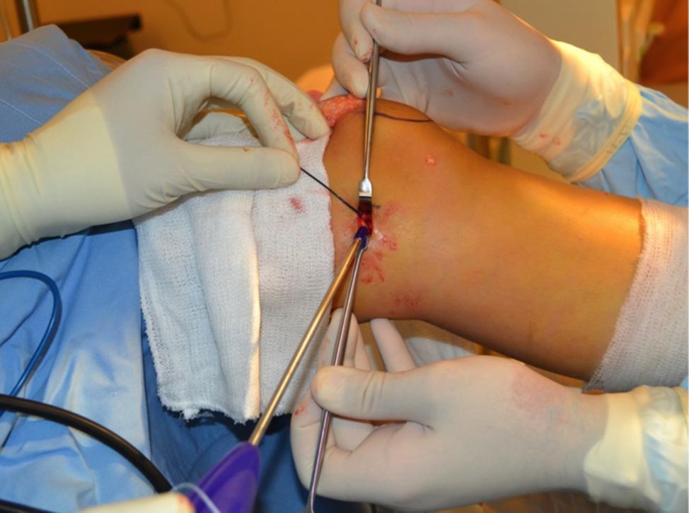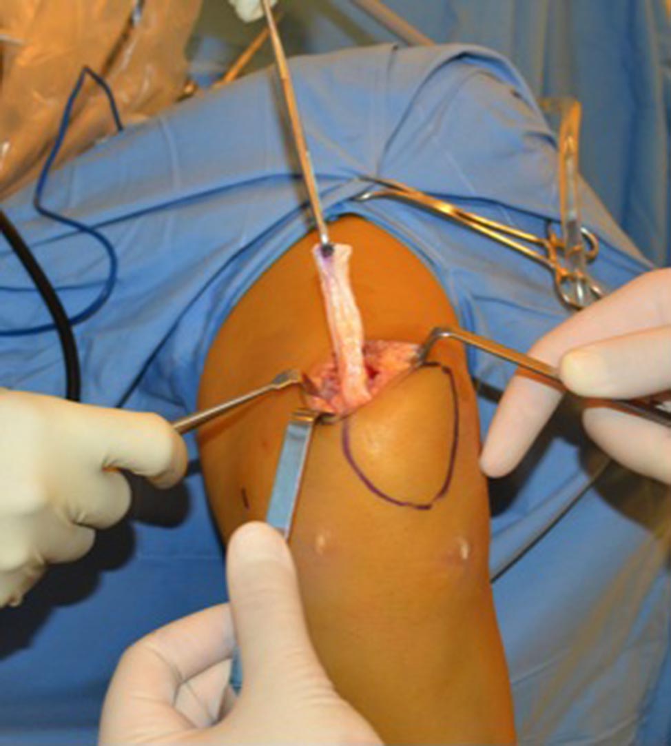Figura 2: Toma de injerto del tendón cuadricipital
