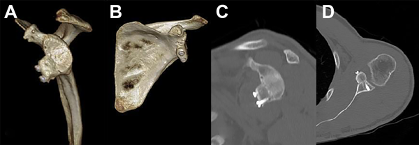 Los pacientes fueron citados por teléfono o e-mail y examinados luego de un seguimiento mínimo de veinticuatro meses. Todos fueron estudiados en el preoperatorio con radiografías en proyecciones anteroposterior y axilar del hombro afectado, y tomografía axial computarizada (TC) con reconstrucción 3D (TC3D) y supresión de la cabeza humeral.