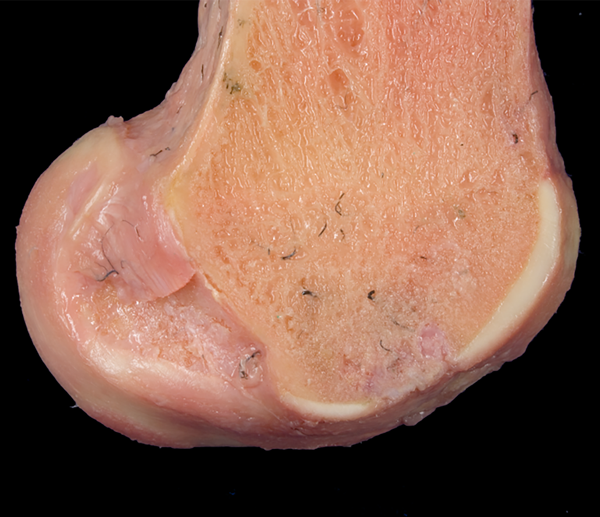 Figura 1: Sección sagital del cóndilo femoral lateral que muestra una lesión que compromete la unidad osteocondral.