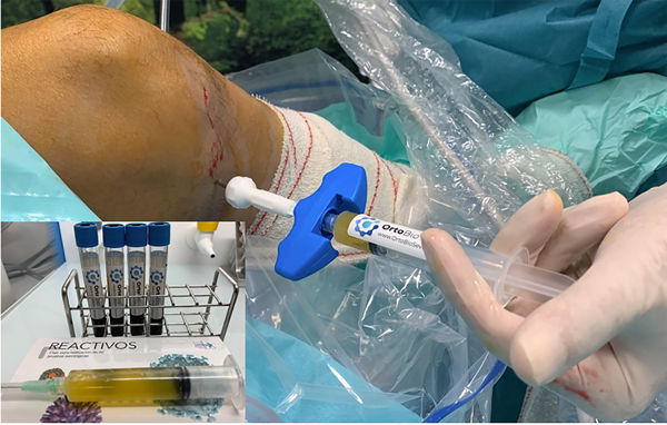 El tratamiento de las lesiones de la médula ósea subcondral requiere la consideración de las contribuciones biológicas y estructurales al cuadro clínico general67 (Tabla 1). Los aspectos biológicos del tratamiento incluyen técnicas de estimulación de la médula ósea, como las micro o nanofracturas y la descompresión del núcleo.68 Esta estrategia de tratamiento también puede incluir terapias de aumentación como las inyecciones autólogas de plasma rico en plaquetas (PRP)69 (fig. 3), tejido adiposo microfragmentado70 o la combinación de ambos (PRP-Tejido adiposo)71 e inyecciones de aspirado/concentrado de médula ósea.72-74 Los aspectos estructurales del tratamiento incluyen la consideración de la subcondroplastia, la bioplastia intraósea (IOBP) y la osteocoreplastia.72,75-77