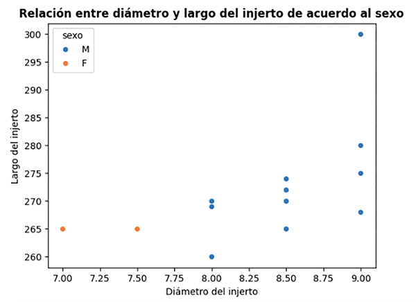 Figura 8: Correlación entre la longitud del injerto con respecto a su diámetro.