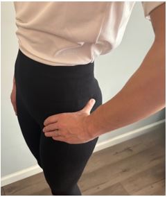 Figura 2. El paciente, que presenta dolor debido a la patología mencionada, señala la zona afectada con la mano en forma de “C”. Este signo es frecuente en consultas por pinzamiento femoroacetabular