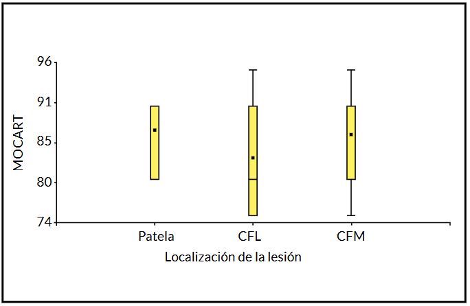 Figura 3. Score MOCART según localización de la lesión (valor p = 0.54)