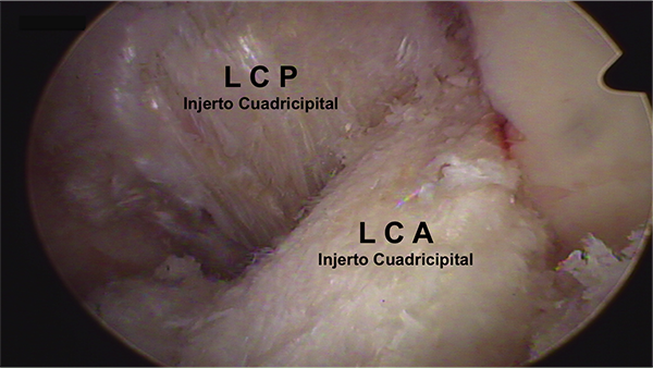 Palabras claves: Artroscopía de rodilla; Reconstrucción LCA / LCP simultánea; Doble injerto tendón cuadricipital