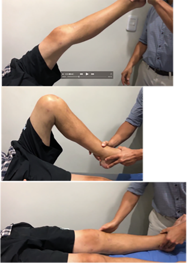 Al ingresar, cuarenta y ocho horas posteriores al accidente, se descartó la presencia de compromiso vascular, nervioso y compresivo. Se realizó el tratamiento quirúrgico pertinente de las fracturas expuestas y se difirió el de la rodilla izquierda. Se la trató con inmovilización mediante férula en extensión y ejercicios de movilidad activa y pasiva controlada a partir de la cuarta semana.