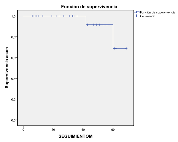 Tabla 2: Se observa una sobrevida del implante del 92.3 % a los cuarenta meses de seguimiento.